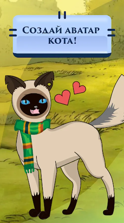 - Original cat avatar: choice of coat type, muzzle expression, shape of eyes and ears;