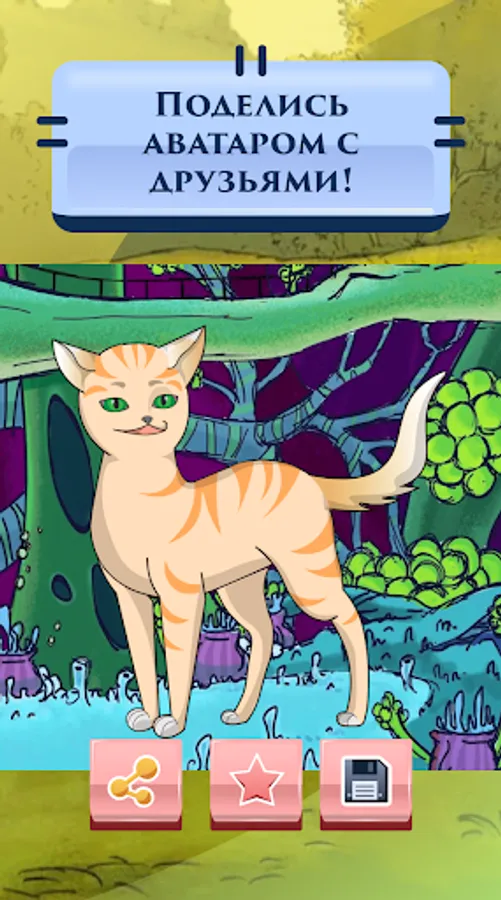 Make a character of your dreams is not difficult at all. Just think of a cat and start creating! Choose the color of fur and paws, add accessories and stickers. Set the background to any suggested photo or favorite image from the device. Save the avatar in the gallery, set it on the phone screen or in the profile of social networks and instant messengers. Forest cats and kittens, affectionate home pet or fantastic cute cats with wings? The creator will allow you to make a cat avatar in the anime style of any appearance.