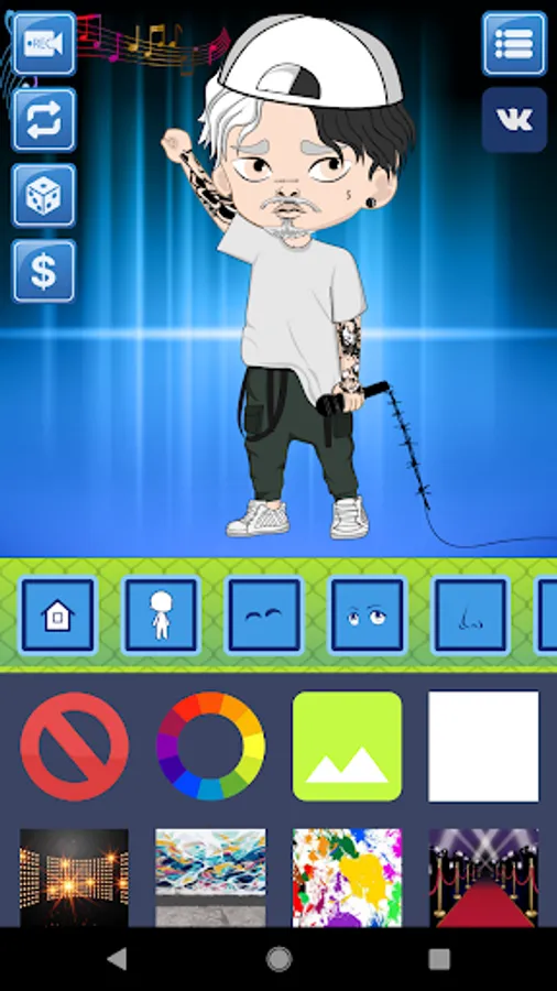 What are you waiting for? Hurry up and install the application and embody your ideas in a stylish avatar! Convey the character's character, dress the star in a fashionable suit, add attributes, a background and go to conquer everyone with your texts. Save the video of the process of creating a star and show everyone how easy it is to create a character in the avatar maker. The finished image can be saved to the gallery, and then set as wallpaper on the device screen or profile avatar in social networks. Invite your friends, create your own rappers and organize an unforgettable rap battle!