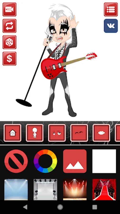As you can see, creating a chibi character is not difficult at all. Dress up fashionable clothes, choose facial features, add accessories and background. That's all, your star is ready to conquer the fans! Create your own musical group and rockers will take to the big stage with music in the style of rock'n'roll or pop.