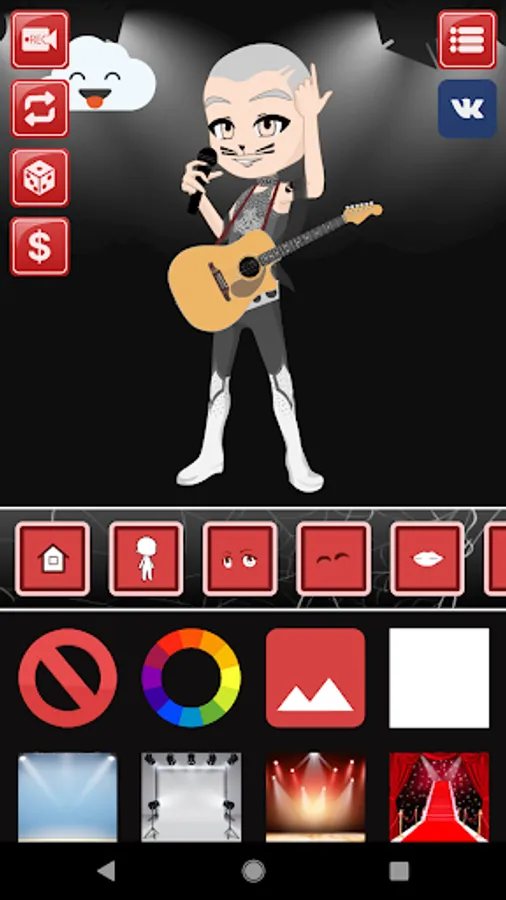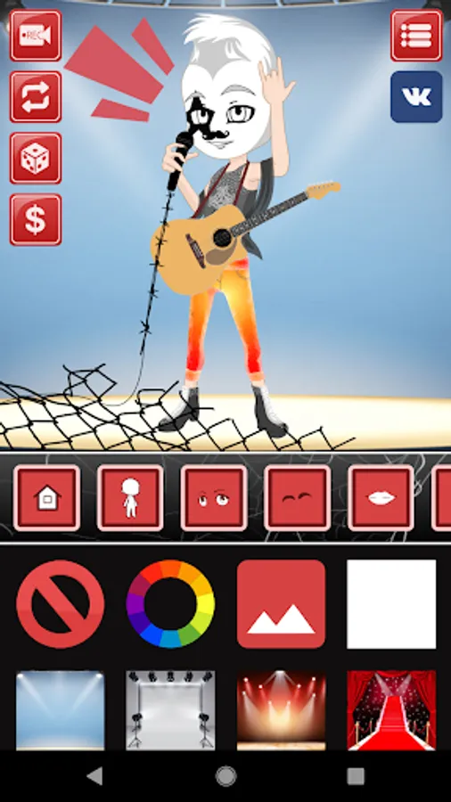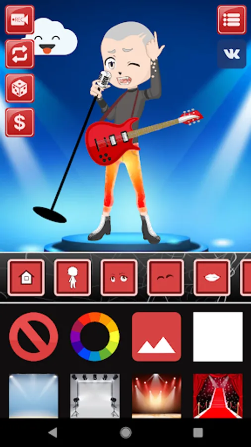 Wide functionality will allow you to create a character, each of which will be individual in its own way. You can come up with an original star, as well as make an avatar of a famous musician and your idol. Don't worry, getting started as a rocker is easy! Download the app and the intuitive interface will help you create a character with pleasure. Invite your friends, create trendy musician and organize a solo concert of a rock'n'roll music band.
