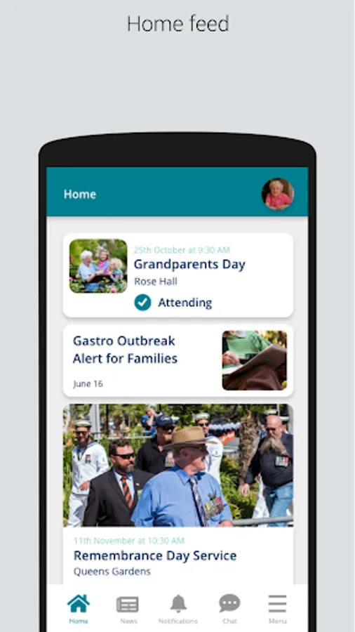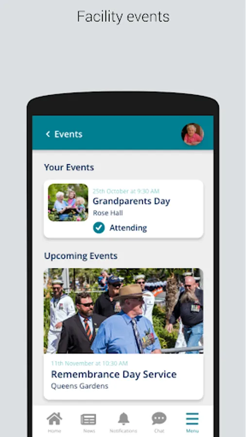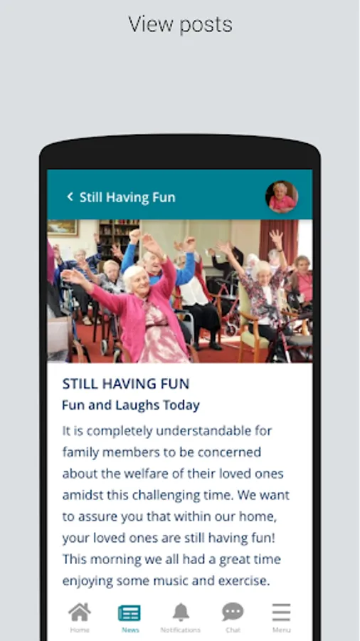 Aveo is a new way for families of Aveo aged care residents to communicate and gain insights into the daily activities within a Aveo facility. The app will feature inter-family group chat, POA to facility chat, support, news, events, and activities allowing families to easily stay in touch with their loved one's daily activities.