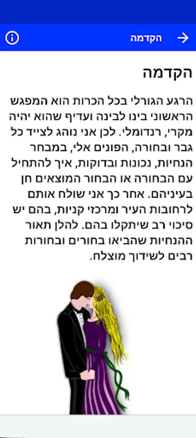 My father is a professional matchmaker in Israel with an experience of over 40 years in the field. My father claims that each pot has a lid and need only to know where and how to adjust it. App "My father matchmaker" will share you with all my father's crazy ideas stapler how to pick up a girl or a guy. We encourage you, so guys and girls read carefully the instructions on the application that sure will take care of you dating tonight.
