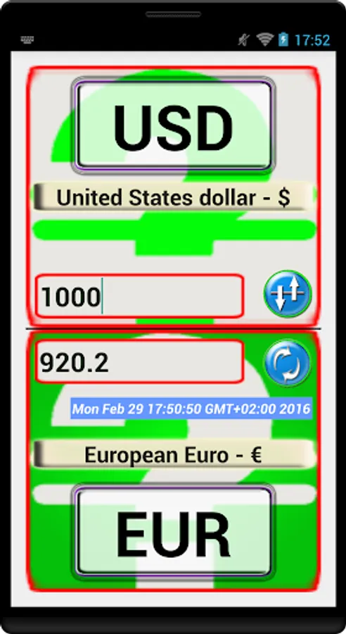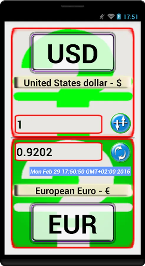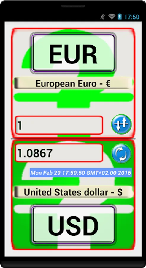 (this app is using a free web service that change the rate every 30 minutes).