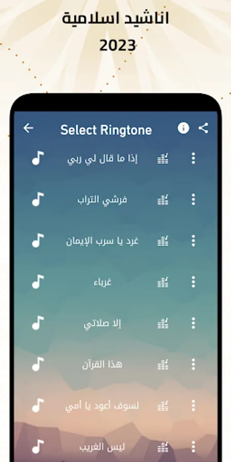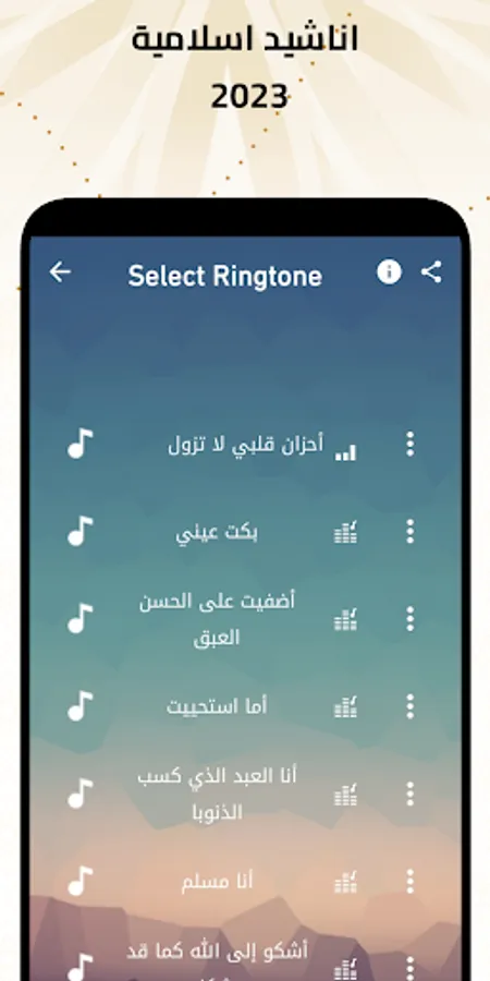Mp3 Islamic Anachid & Ringtone music ringtones and sounds it’s a unique-application ringtones, that guarantee every user a compilation of extraordinary Islamic Anachid & Ringtone free mp3 ringtones for phones and tablets.