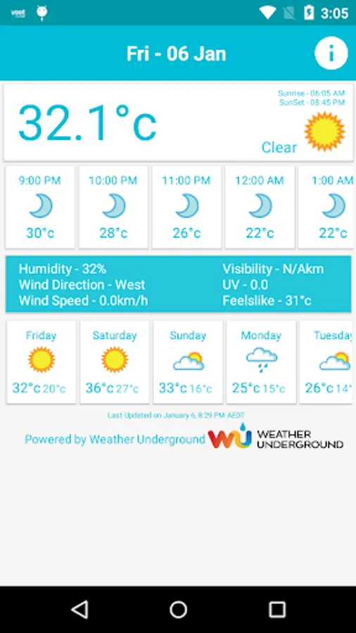 Melbourne Weather: a beautiful and clean weather app, designed for Melbourne city. With just one click you can check the weather for today, the weather for tomorrow , the weather forecast for the next 10 days and the weather for next 36 hours.