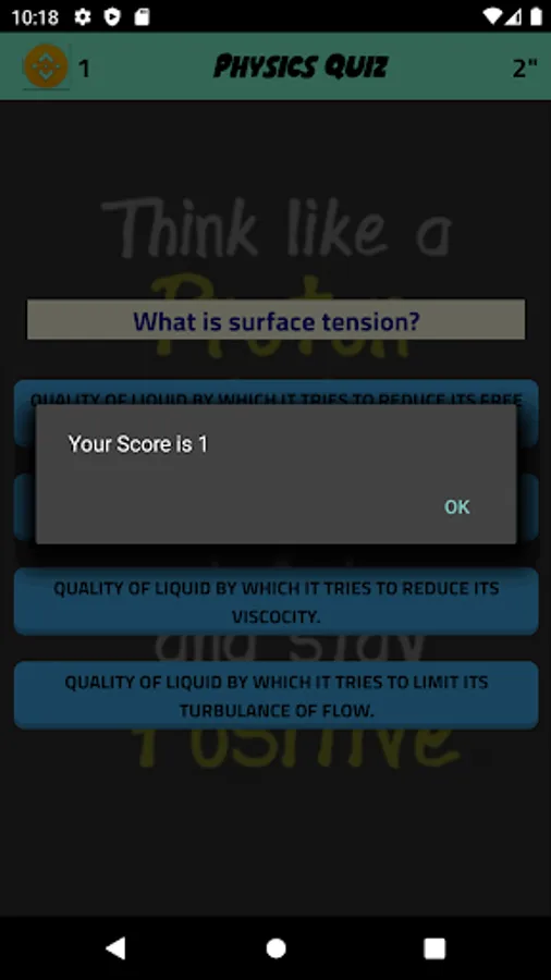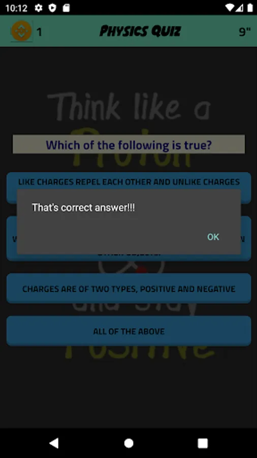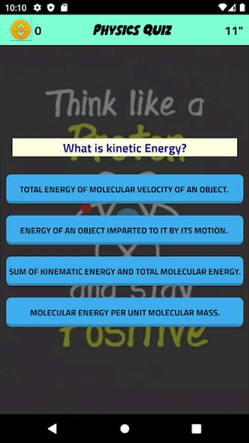 Test your knowledge of physics. You will be given ten questions with four options each. Choose the most appropriate one in twenty seconds. No negative marks. No going back.