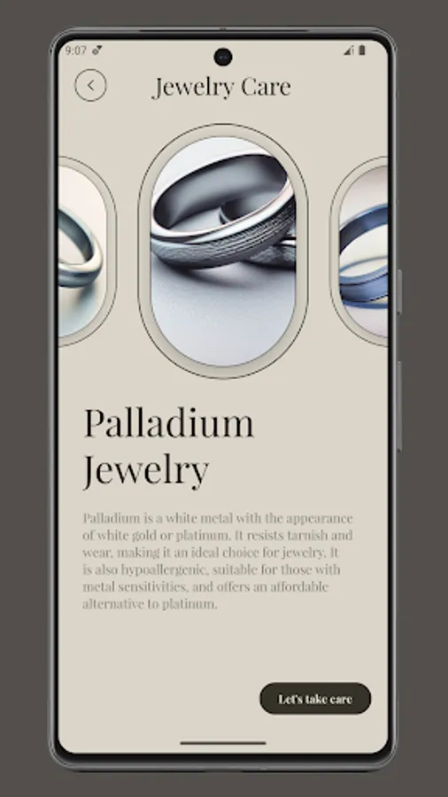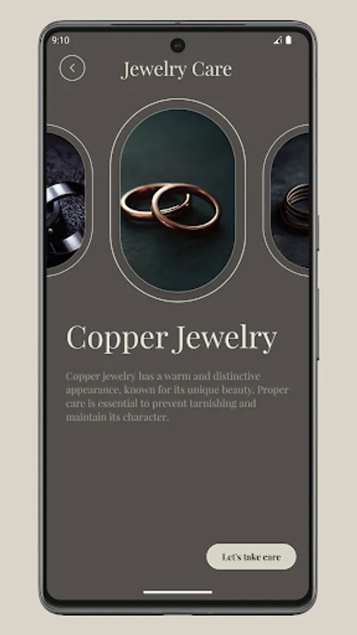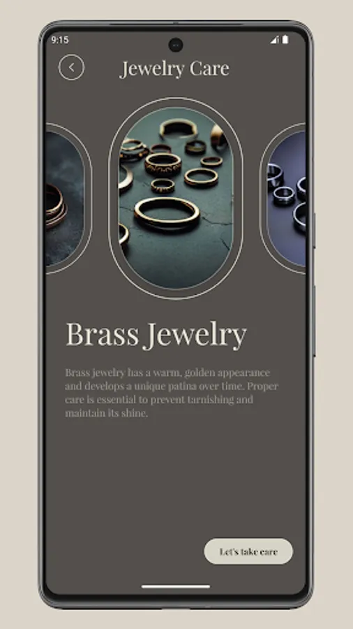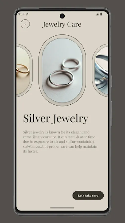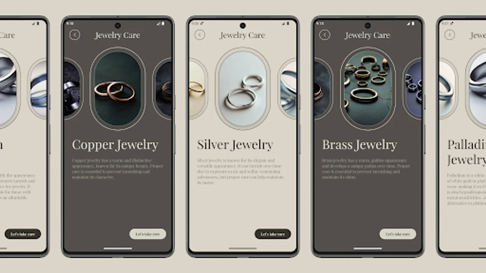 • Every Metal Jewelry Guidance: Go through the detailed caring information for each jewelry type, from gold necklaces to silver anklets and beyond. Discover expert tips and guidance on how to care for your jewelry collection. From cleaning to storage, our app provides valuable insights to keep your jewelry shining bright