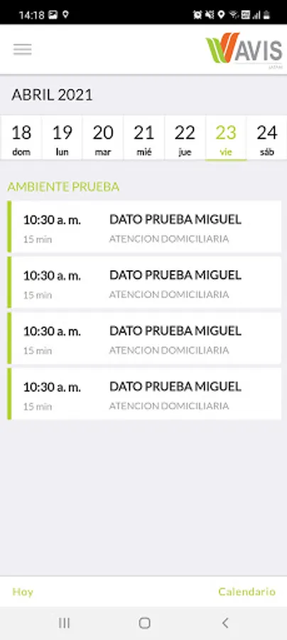 AVIS Latam is an APP that allows AVIS professional users to access their patient diary and send different messages to their health center, such as that they are arriving late at the office.