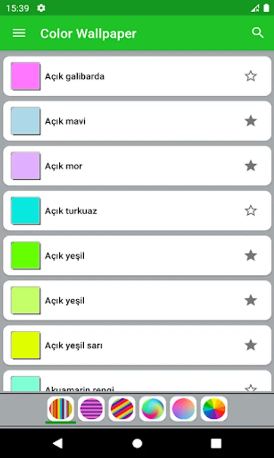 Plain, (vertical, horizontal and diagonal striped), plasma and blur options.