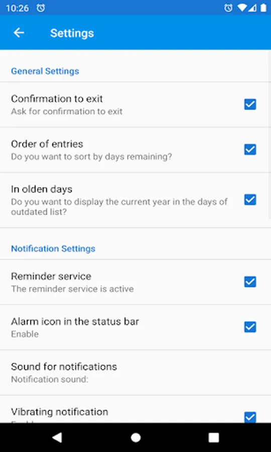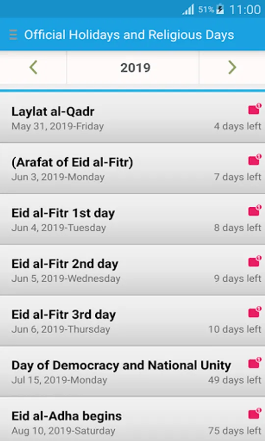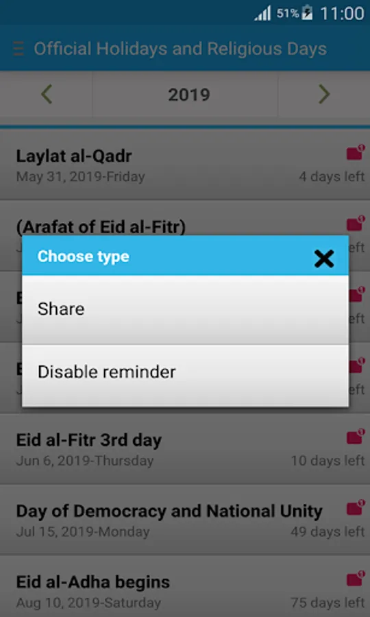 - Days of notification; On the day, 1 day ago 2 days ago 1 week ago, 15 days ago.