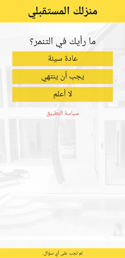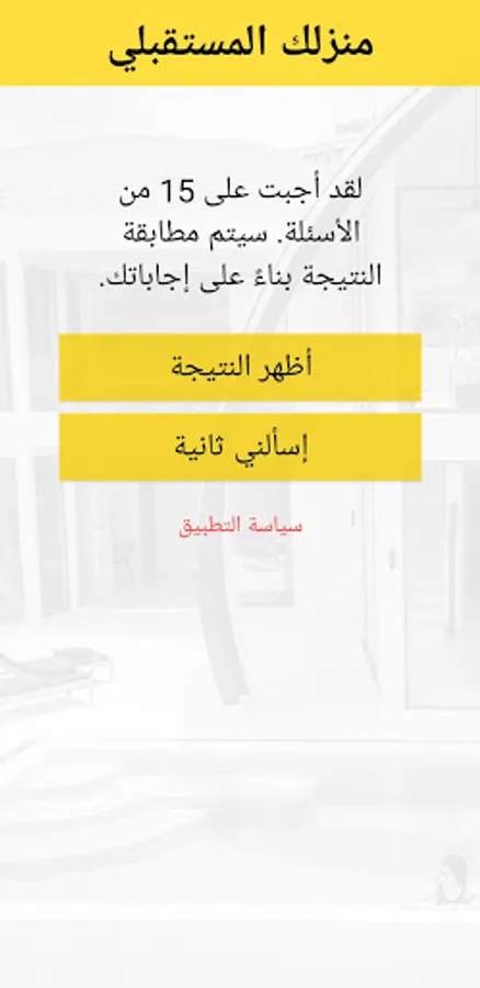 An entertainment application, through which you can learn about the shape of your home in the future, share and enjoy the results with family and friends, do not miss the opportunity to see your home in the future, by answering some of the questions raised in the application, you can also download our similar applications through the Google Play Store, we hope Have a happy life ...