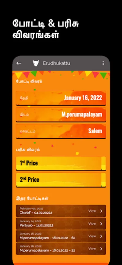 Users can Check the Date of the sport and details of the participating bulls and their owners.