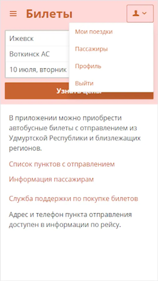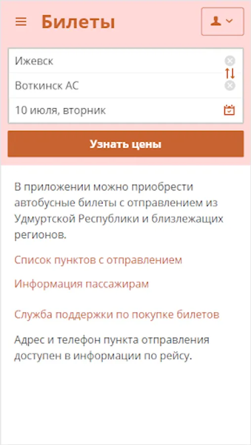 In the application, you can buy bus tickets departing from the Udmurt Republic and neighboring regions. Within the app you will be able to purchase tickets for flights, see the schedule and other information. The passenger's personal account access to all orders and can refund the previously purchased tickets bilet.do site or application.