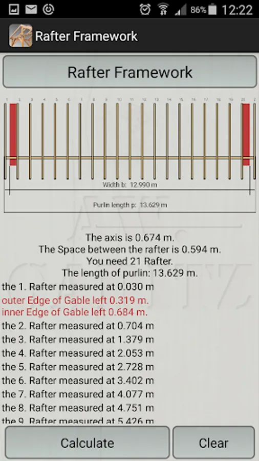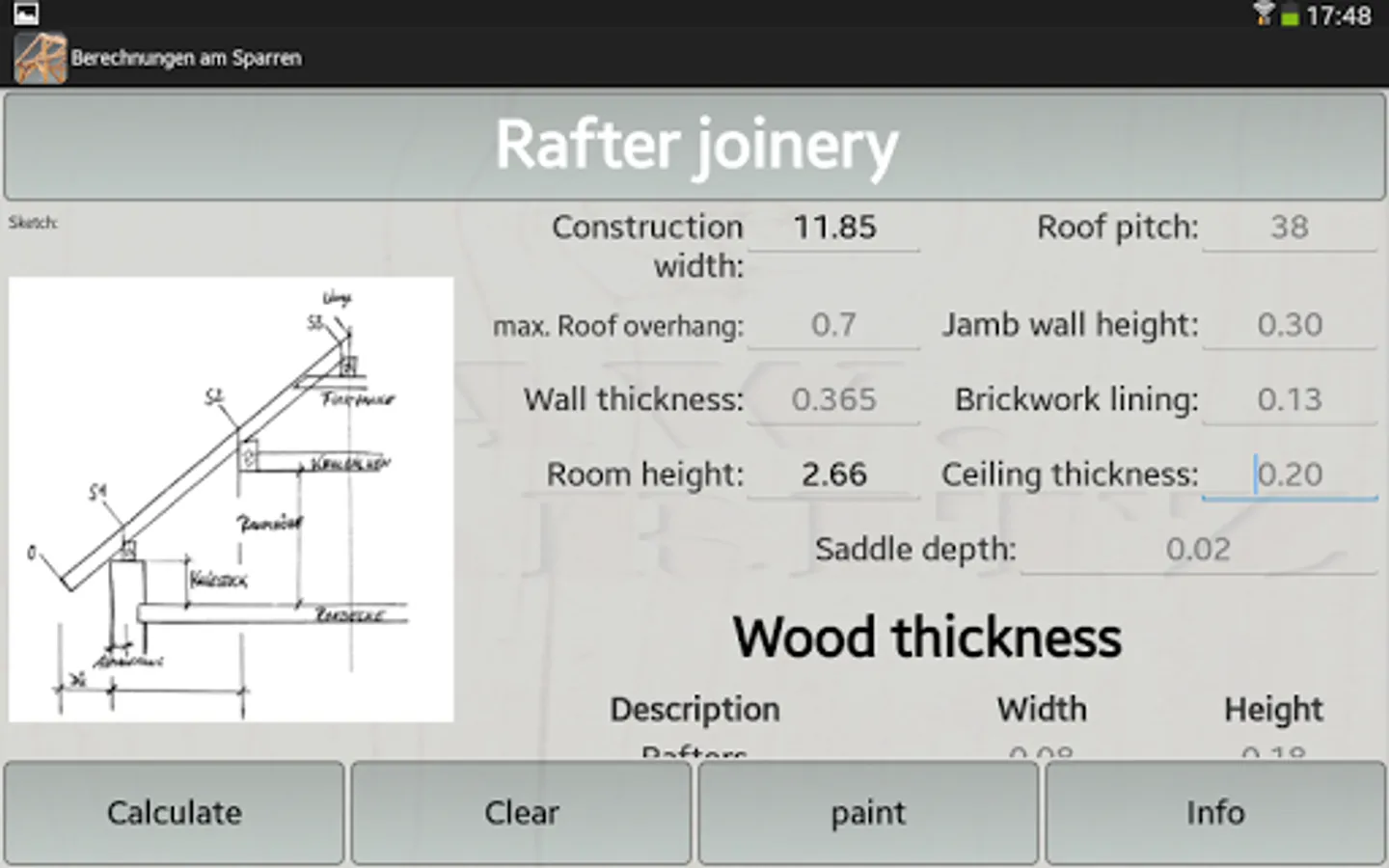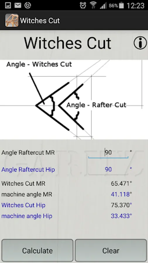 Especially with the renovation of old roofs you have on the site sometimes " tinker" a hip rafter. The app calculates ridge-angle and inclination of the Hip rafter.