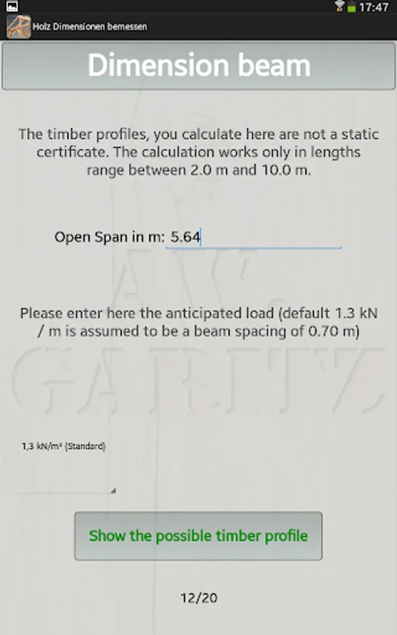 You want to know how strong beam at a given span and a particular load case should be? The app calculates out the strengths of past experience. They naturally, therefore, does not serve as static verification.