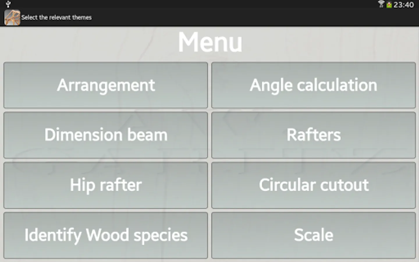 Woodwork is a collection of 8 different tools for wood crafts. Professionals can just use Woodwork like students and amateur craftsmen. Woodwork is meant to be out of the office quickly check a few measurements or to recalculate. Woodwork is very suitable for the construction site!