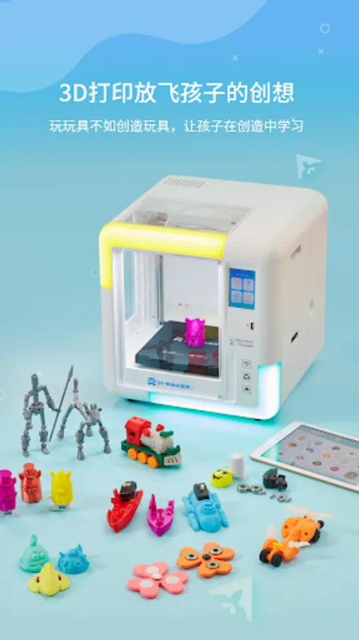 X-MAKER 3D Printer, with all-new gamification 3D design App and easy-to-use one-press printing, dramatically lowers the barriers of 3D design and 3D printing to help children and adults make their creativity touchable easier than ever.