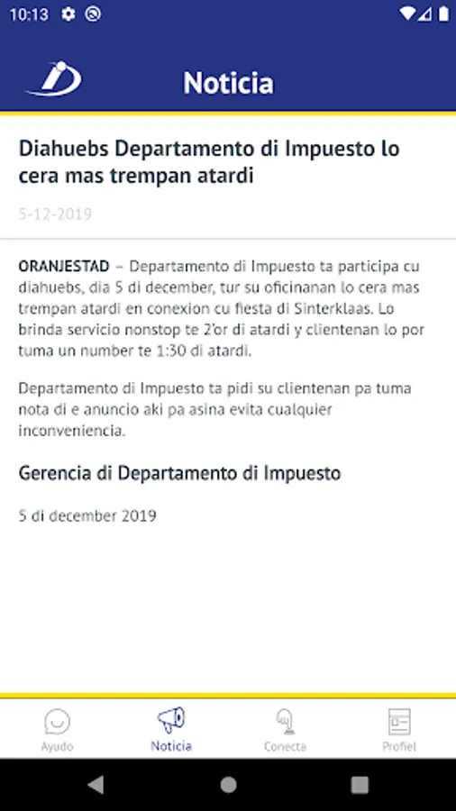 BO impuesto ta e app oficial di Departamento di Impuesto, Aruba