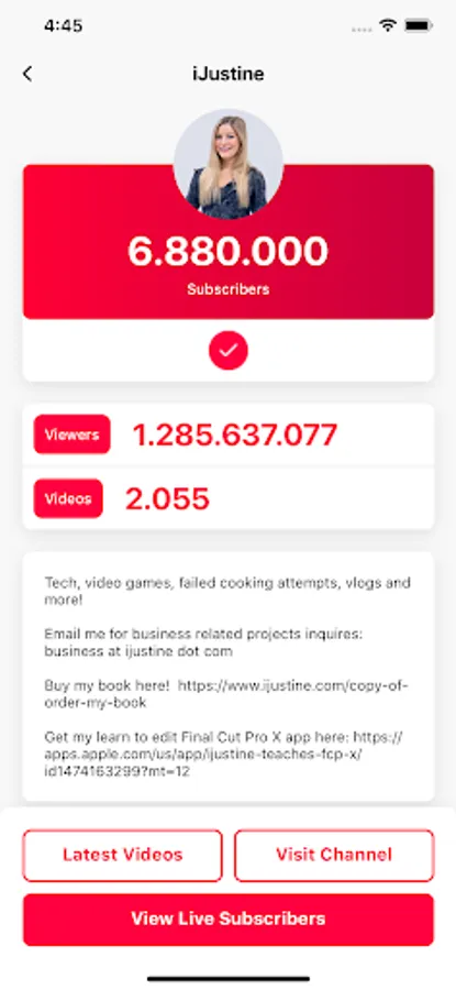 Subscribers+ allows you to track YouTubers Channel Subscribers and Analytics in real time without Ads. YouTubers can view live counter of their total channel views, total channel comments and total channel videos.
