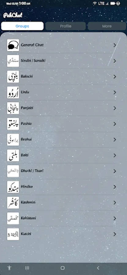This app allows you to chat with Pakistani people in Sindhi, Saraiki/Siraiki, Urdu, Pashto, Punjabi, and more!
