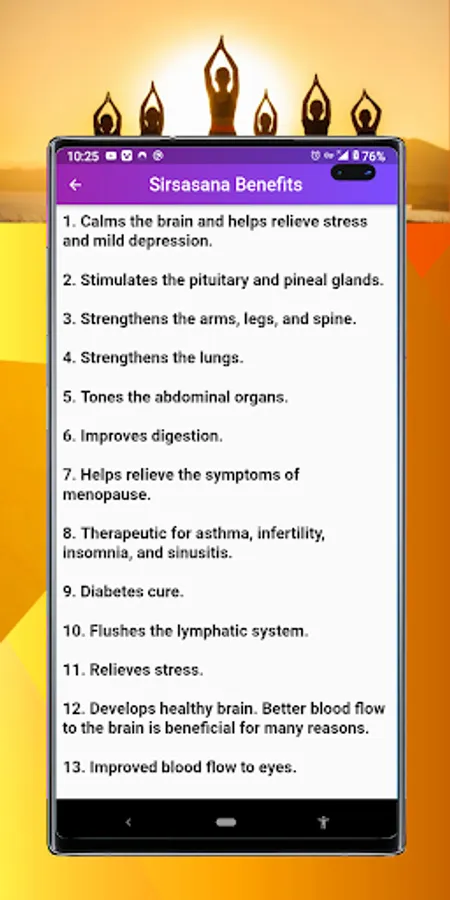 Using this app will help you to relieve stress, get flexible and calm your mind. The daily yoga routine contains many poses or exercises. Do it daily to create a toned, flexible and strong body. Yoga helps you to look and feel younger than your age. Improve your athletic performance. Doing yoga daily is good for your body.