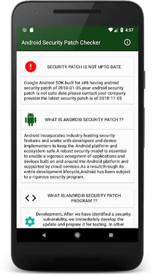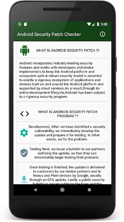 This application will let you know about your security patch is up to date or not it will help you to get the latest android security patch check.we are checking patch directly from the google latest security patch update of every months.The google is releasing the security patch every month and we are fetching direct patch details from their directory and on that basis checker will let you know.!