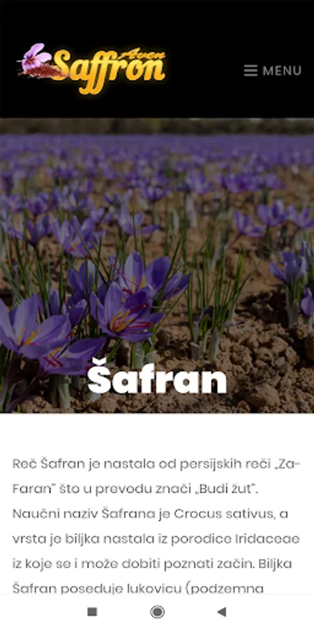 Reč Šafran je nastala od persijskih reči „Za-Faran“ što u prevodu znači „Budi žut“. Naučni naziv Šafrana je Crocus sativus, a vrsta je biljka nastala iz porodice Iridaceae iz koje se i može dobiti poznati začin. Biljka Šafran poseduje lukovicu (podzemna stabljika), cvetovi su zvonoliki i imaju šest latica, tri žuta prašnika koji budu u svim bojama. Listovi su uski, dugački i nenazubljeni sa belom linijom dužinom lista koja nastaje nakon cvetanja. Šafran je sigurno najskuplji začin na svetu, jer je za proizvodnju pola kilograma ovog praha potrebno 75.000 cvetova.