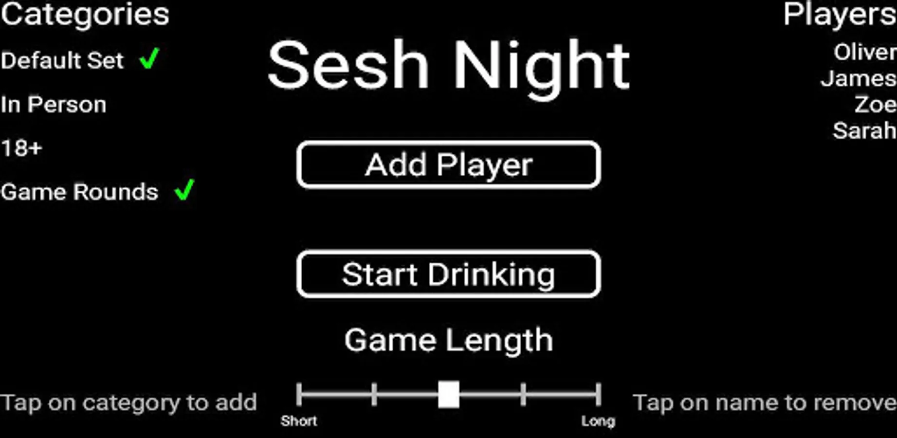 A drinking game app with no complicated subscriptions and is quarantine friendly, with a large range of exciting, wild and revealing challenges that'll make sure each use is a good sesh.