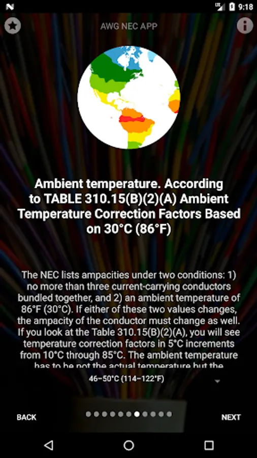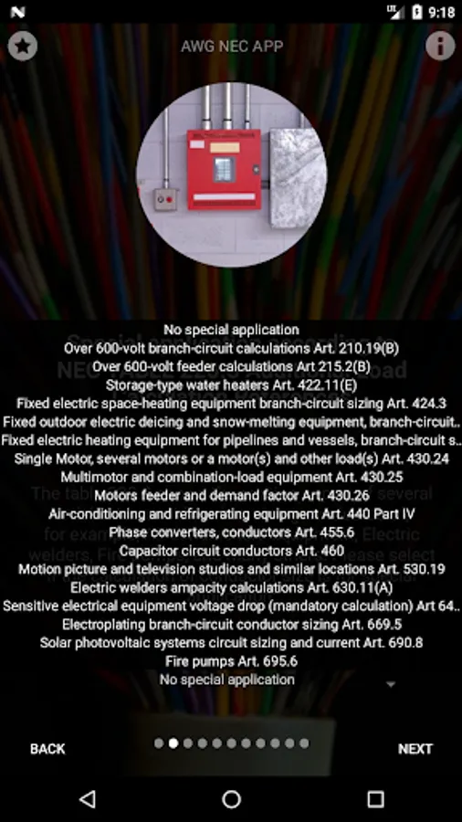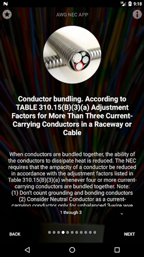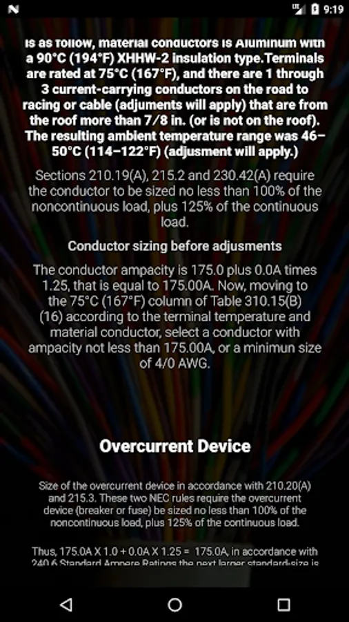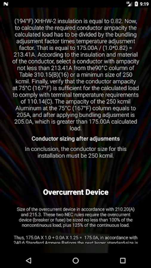 AWG Calculator is the only one in its category that explains step by step the calculation of conductors, makes references to NEC articles and gives the result as if you had the NEC handbook open in your hands.