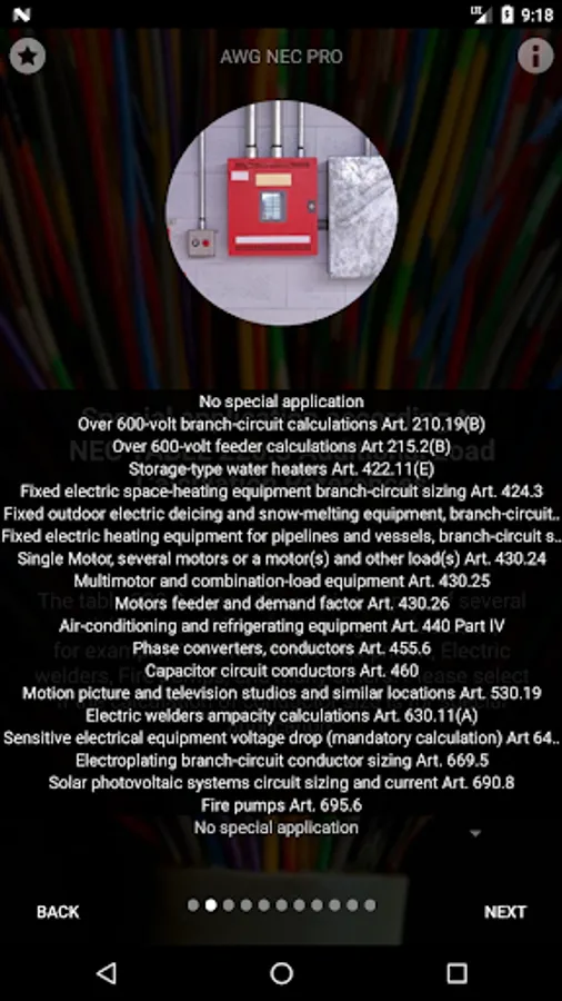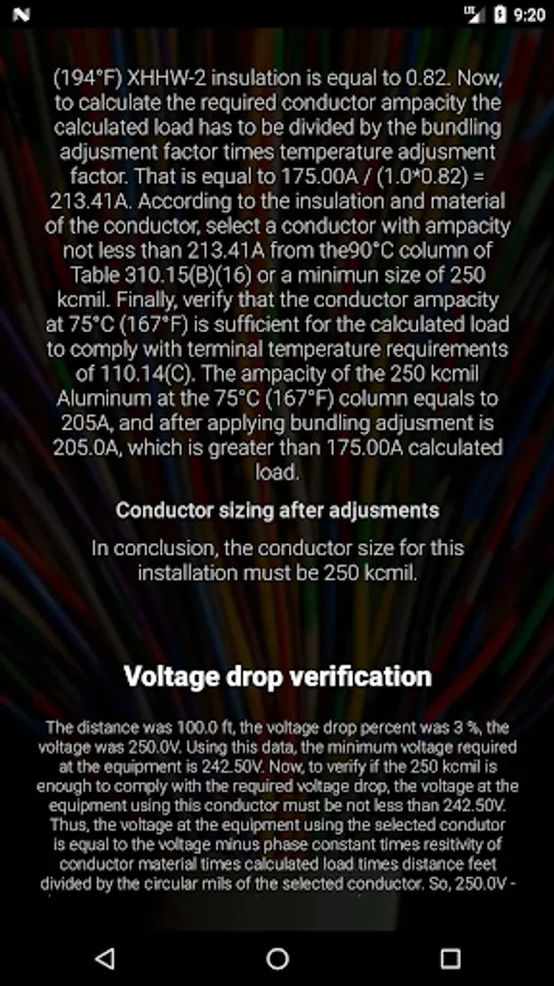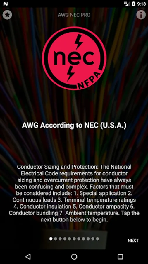 It allows to calculate the electrical cables depending on the conductive material, the type of network, current, voltage, power, power factor and voltage drop. All calculations based on the NEC (National Electric Code) of the United States of America.
