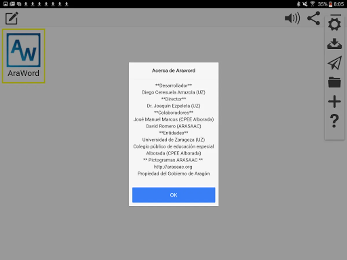 AraWord has been developed in colaboration with ARASAAC (http://arasaac.org) and the University of Zaragoza.