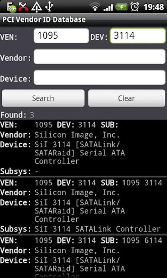 This app is a database of PCI Vendor and Device IDs (VEN/DEV)