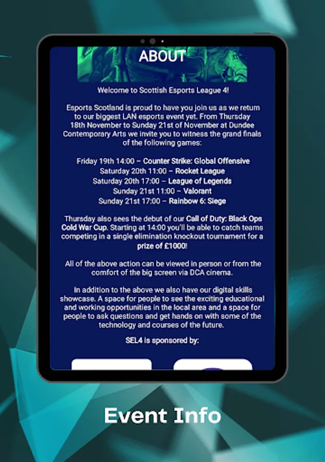 Welcome to Scottish Esports League 4 Event Guide mobile app!