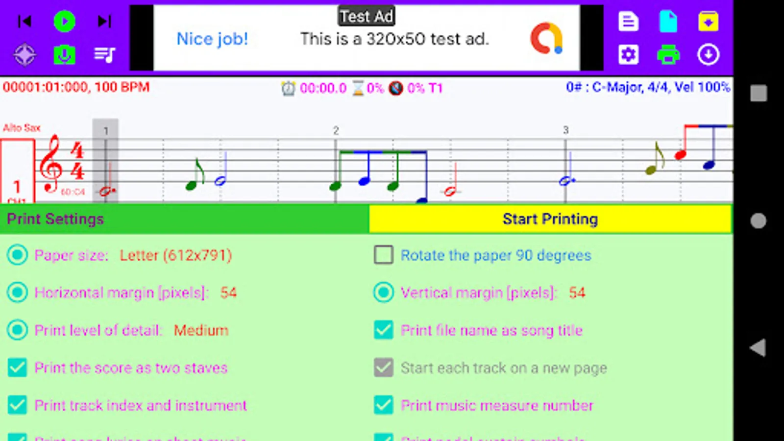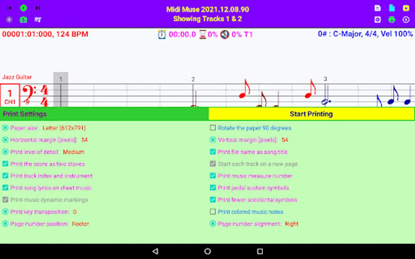 Print sheet music to PDF file.