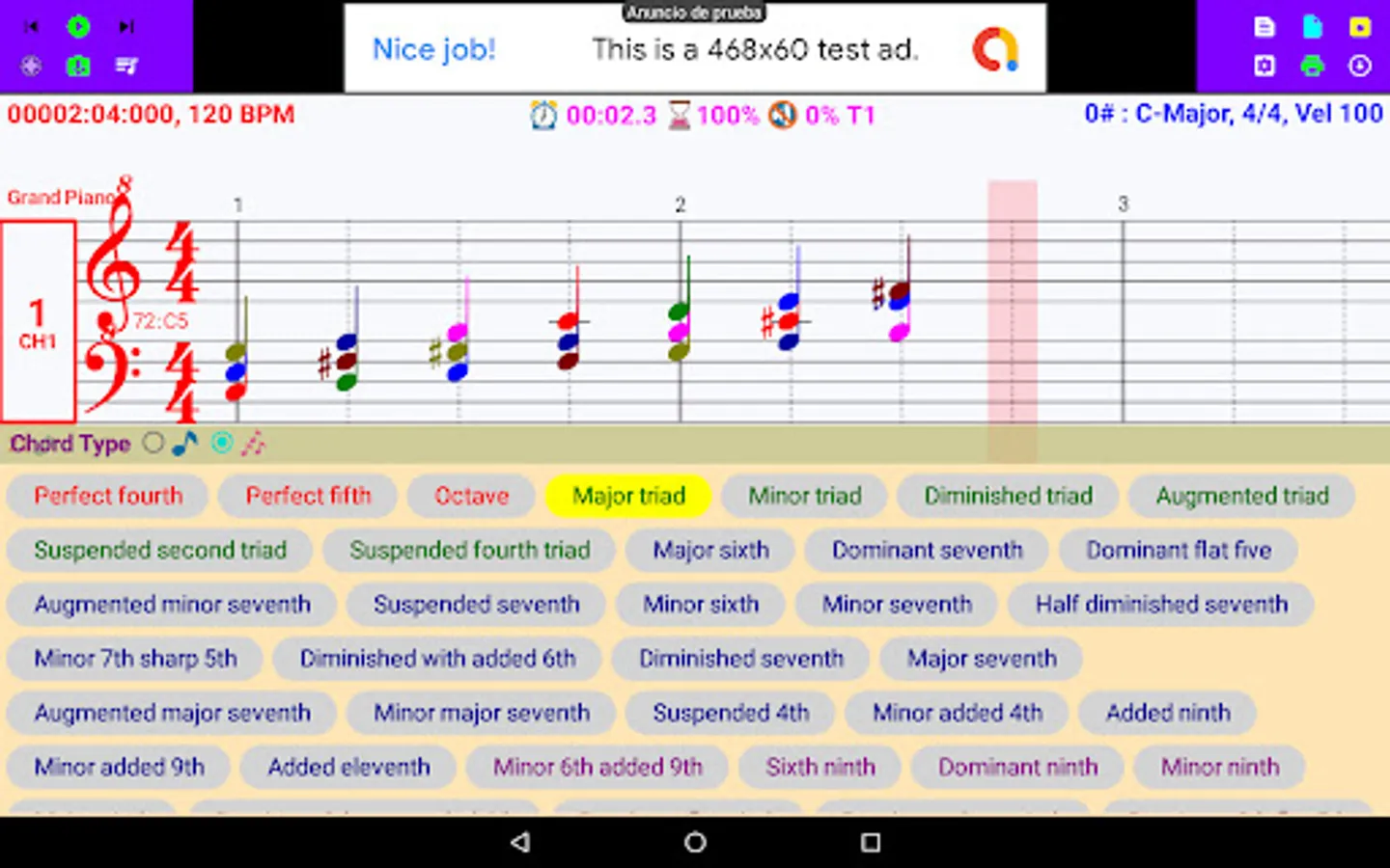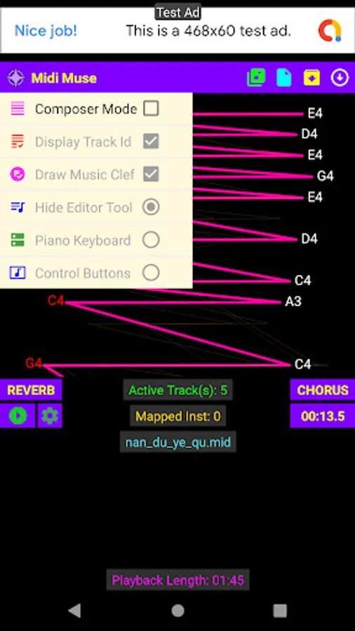 Tap buttons to play MIDI notes.