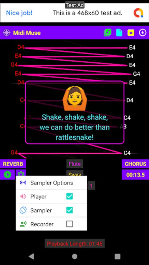 Shake phone to make music sounds.