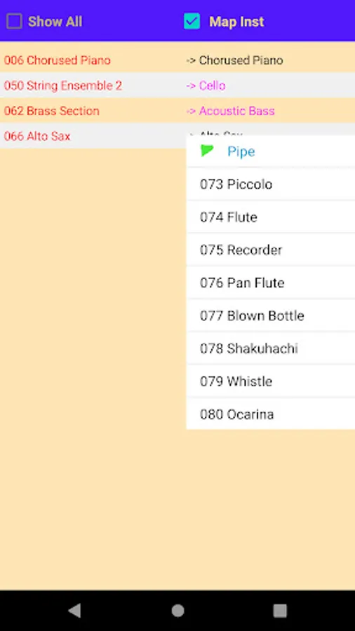 Play MIDI song with mapped instruments.