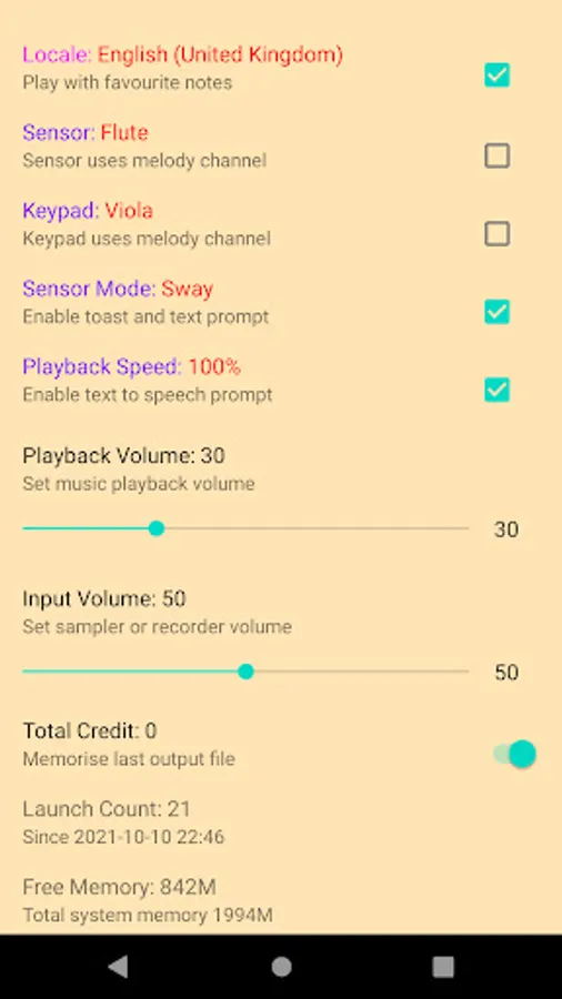 Change play speed and active channels.