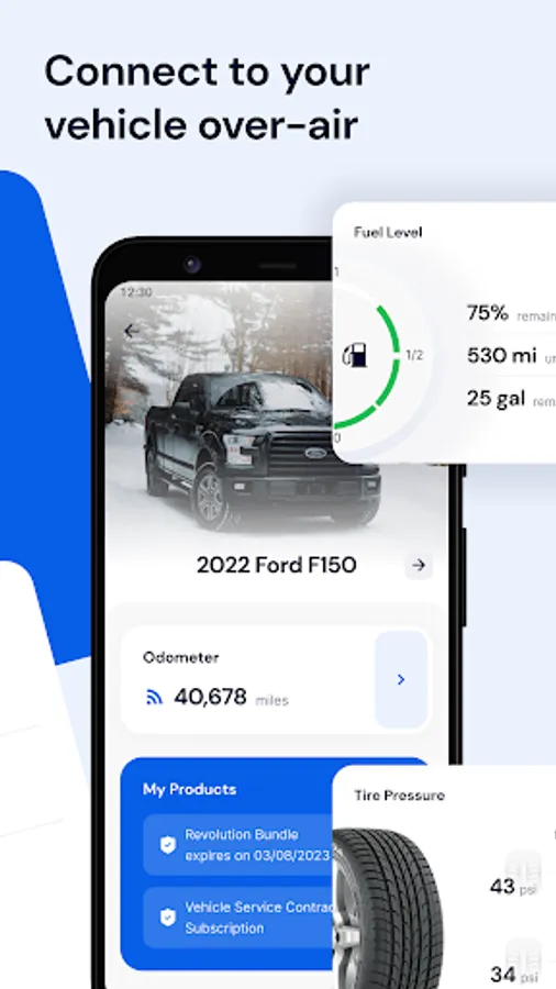 • Connect your vehicle over air for automatic updates to your vehicle health, maintenance and product life span