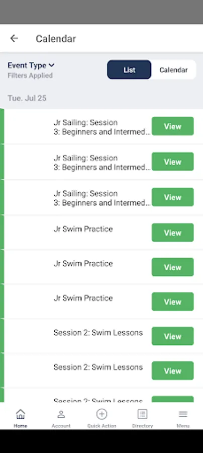 View calendar of events and sign up