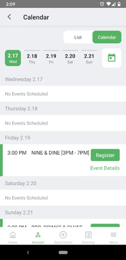 - View calendar of events and sign up