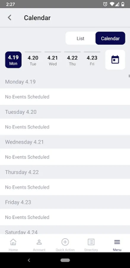 - View calendar of events and sign up