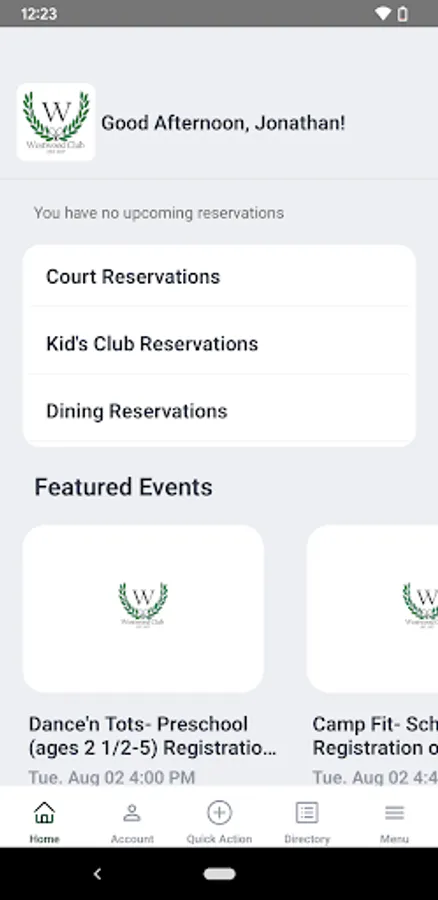 Mobile App for use by members of Westwood Club in Richmond, VA. Westwood Club members may use the app to view and pay statements, book courts, sign-up for fitness classes, make dining reservations, register for events, access membership directory and more. Requires an active membership with Westwood Club to activate and access.