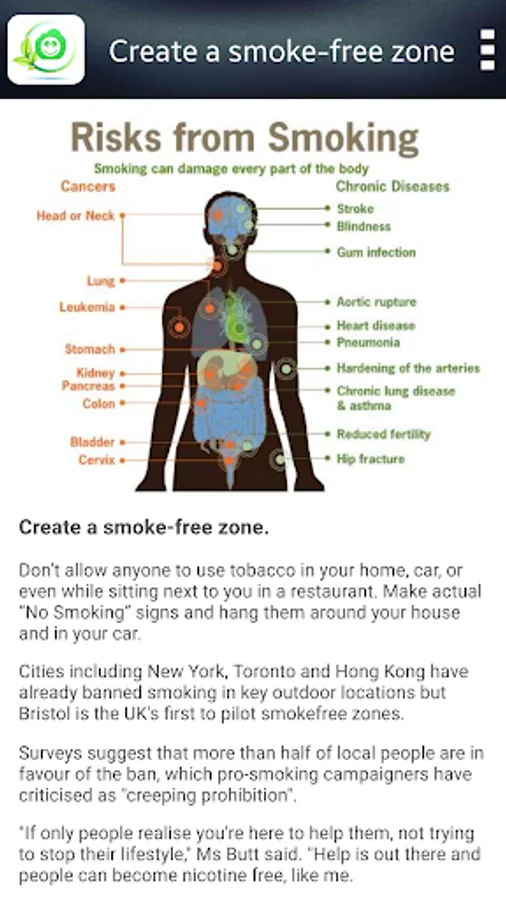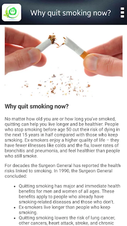 Are you looking for comprehensive information about how to quit smoking? Do you need simple but impressive tips about quit smoking? You're in right place now, because this application will be help to you about stop smoking.