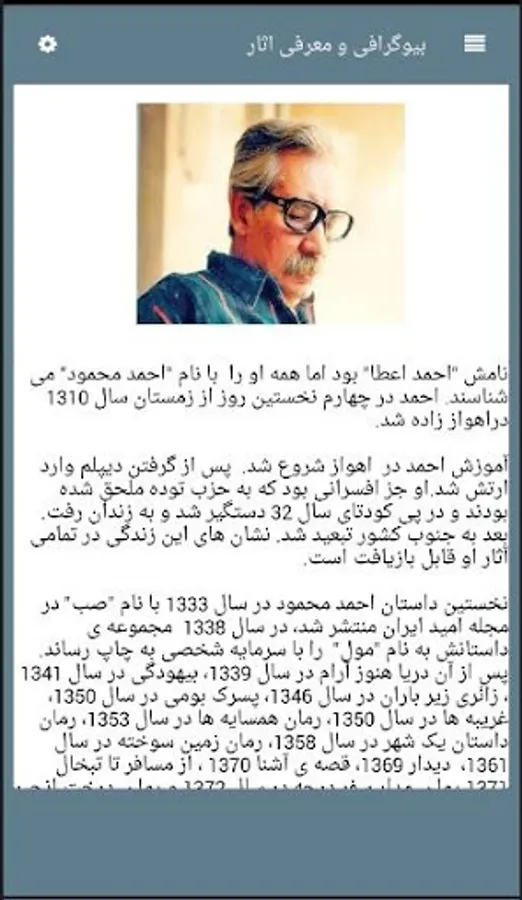 His name was "Ahmed Atta" but everyone knows him as "Ahmad Mahmoud". Ahmad was born on the fourth day of winter of 1910 in Ahwaz.