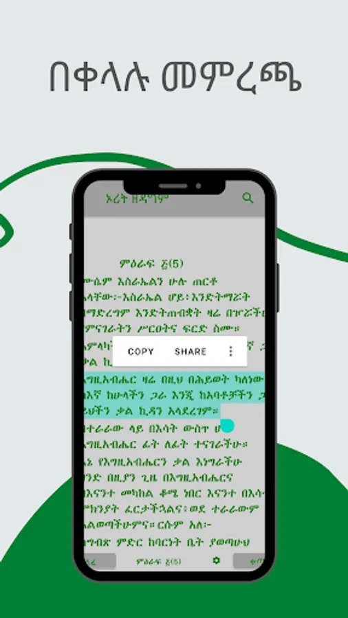 5. ጽሁፍን ሁለቴ በመጫን ወይም ጫን አድርጎ በመያዝ መምረጥና ለጓደኛ ማጋራት