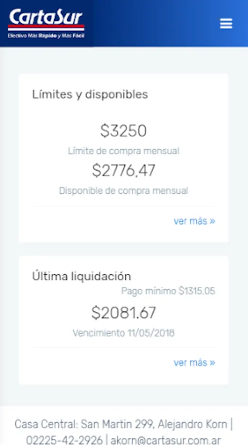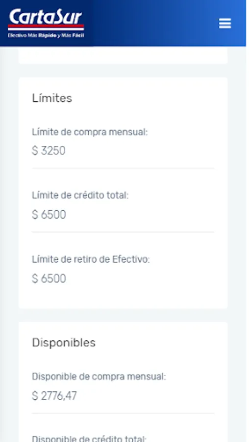 I know all the information you need to know your CartaSur card in one place. You can access your limits and available, summaries and much more ...
