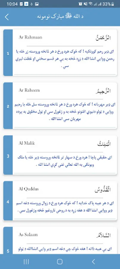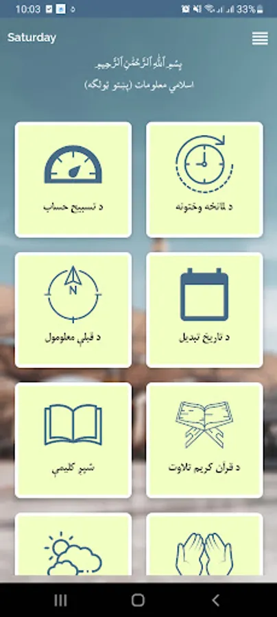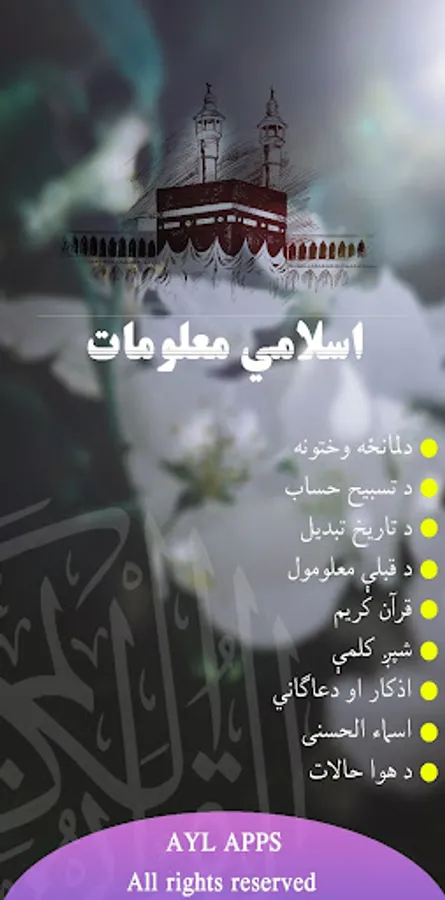 په نوموړي آپلیکېشن کي د لمانځه وختونه، د تسبیح حساب، د تاریخ تبدیل، د قبلې معلومول، د قرآن کریم تلاوت، د الله ﷻ مبارک نومونه، اذکار(دعاګاني) او د اسلام شپږ کلمې ځای پر ځای سوي دي.