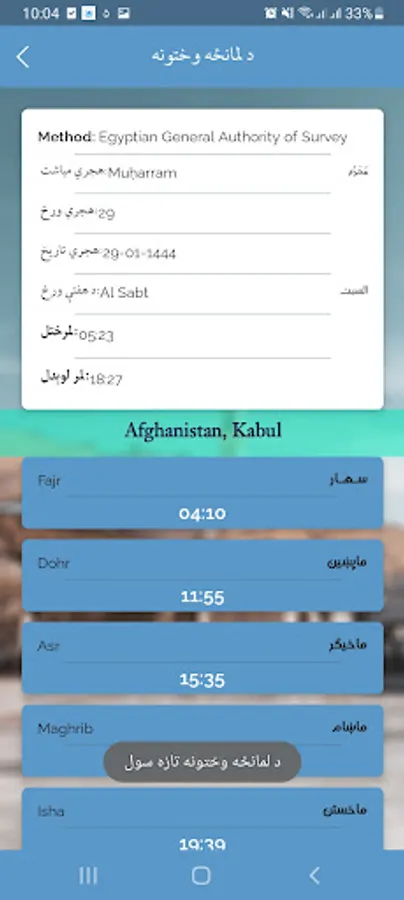 که چیري ستاسو انټرنټ موجود وي نو بیا کولای سئ چي د لمانځه وختونه آپډیټ کړئ، د لمانځه وختونه (برخه) غیر له انټرنټه کار نکوي!